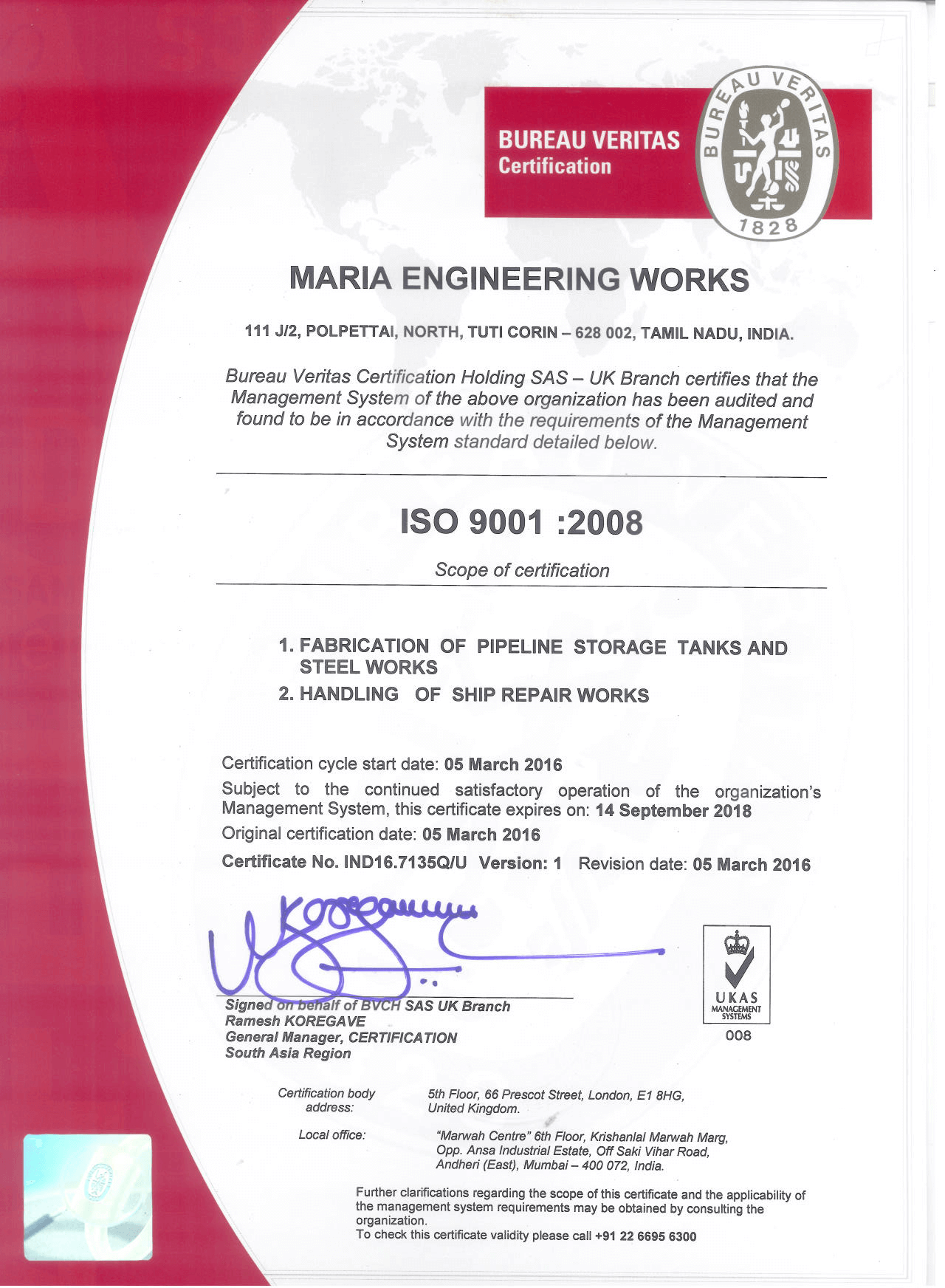 Maria Engineering is a vibrant and dynamic young aspiring an ISO certified firm which specializes on Marine & Industrial sectors since 2006. We have grown extensively throughout the years and have a team of highly experienced specialists to deal with any type of marine and industrial repairs.